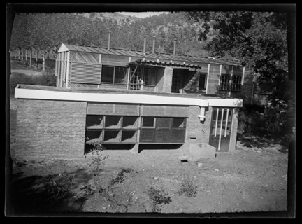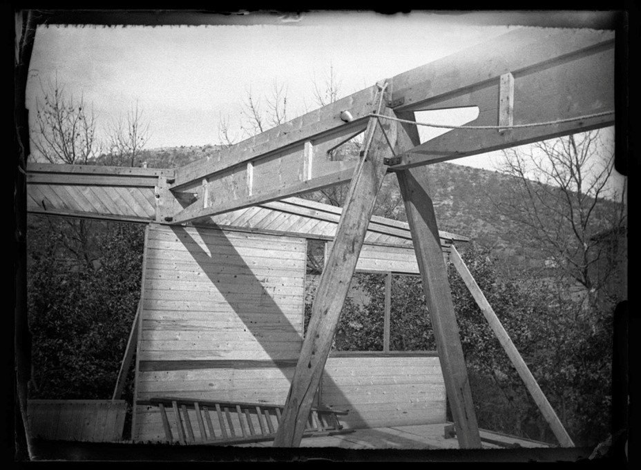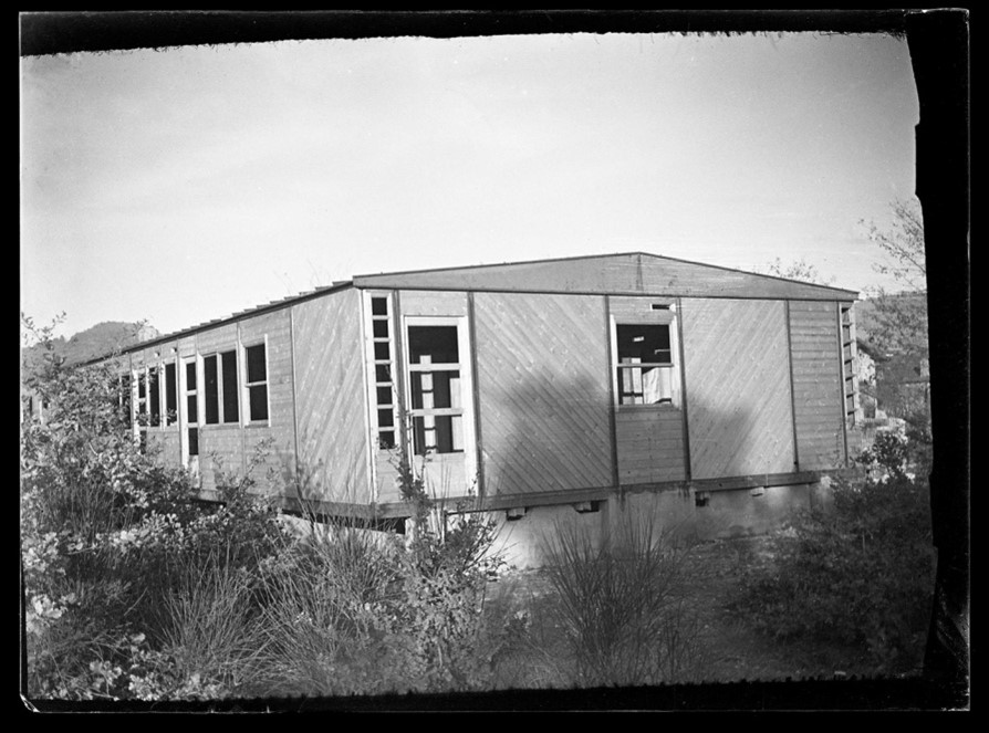 En 1942, Pierre JEANNERET, l’architecte de ces constructions légères, vient à St Auban et photographie les bâtiments en cours de montage.